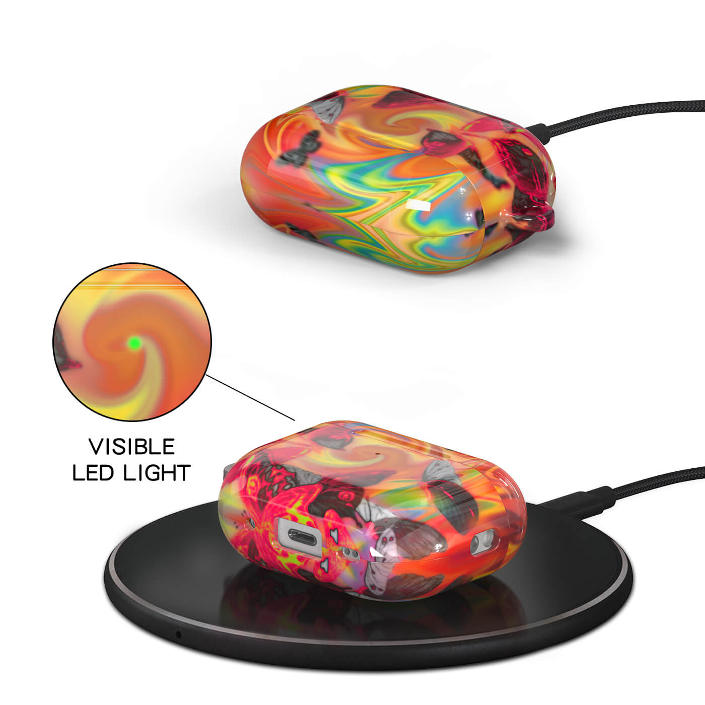 Our cases are wireless charging compatible, allow easy access to the charging port and don't obstruct the LED charging light so you can charge your AirPods Pro without ever having to remove your case.