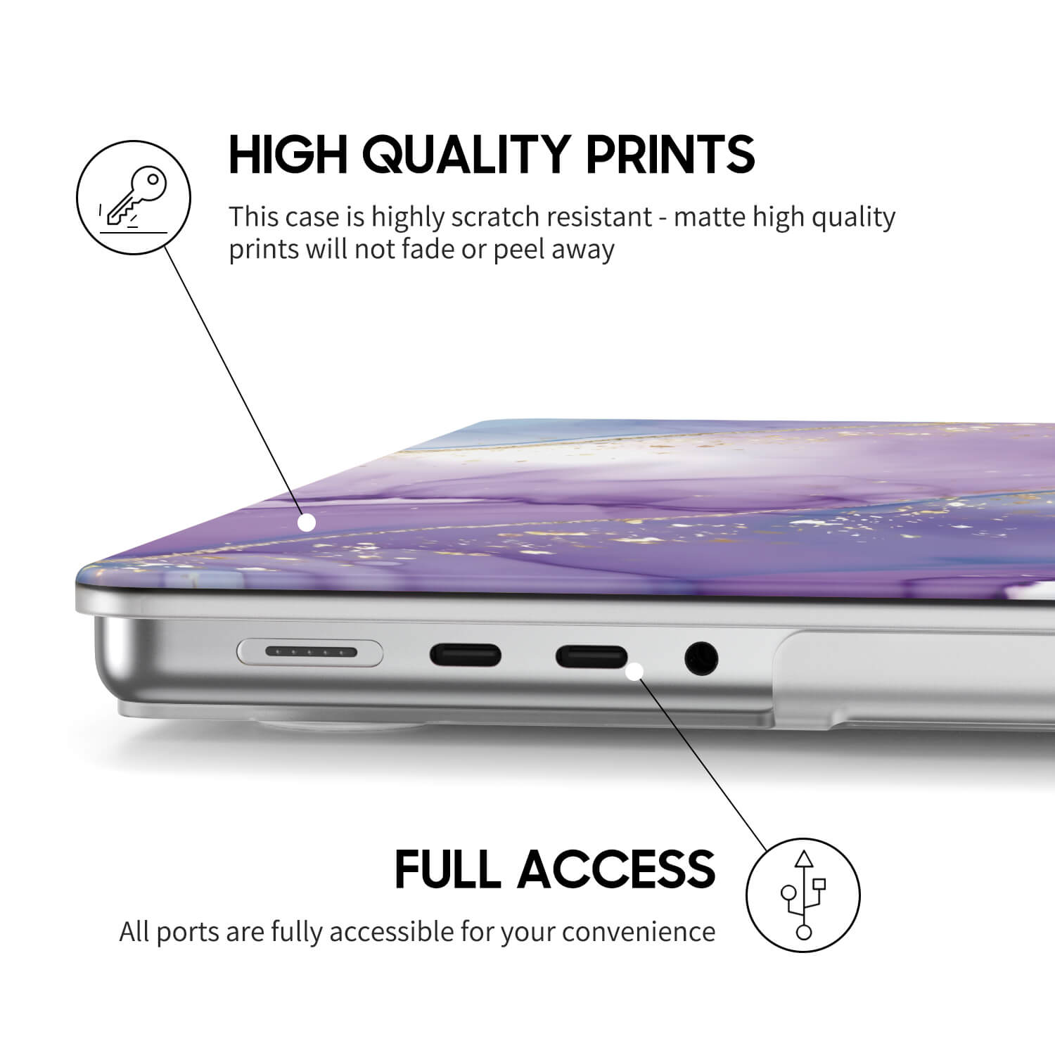 Sufficient space is reserved for each MacBook port without affecting normal use. This MacBook case is highly scratch-resistant - the crystal clear, high-quality printing won't fade or peel.