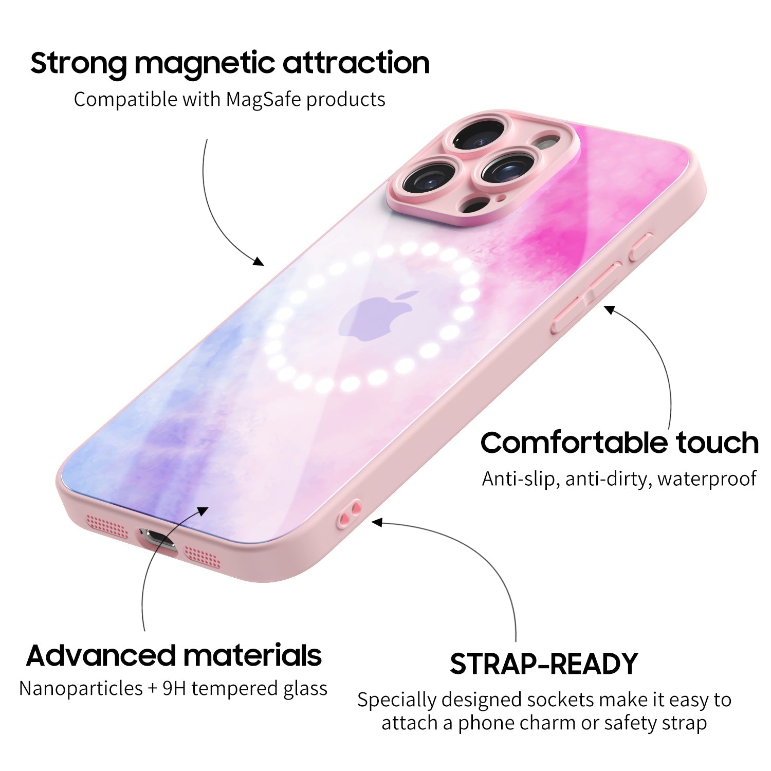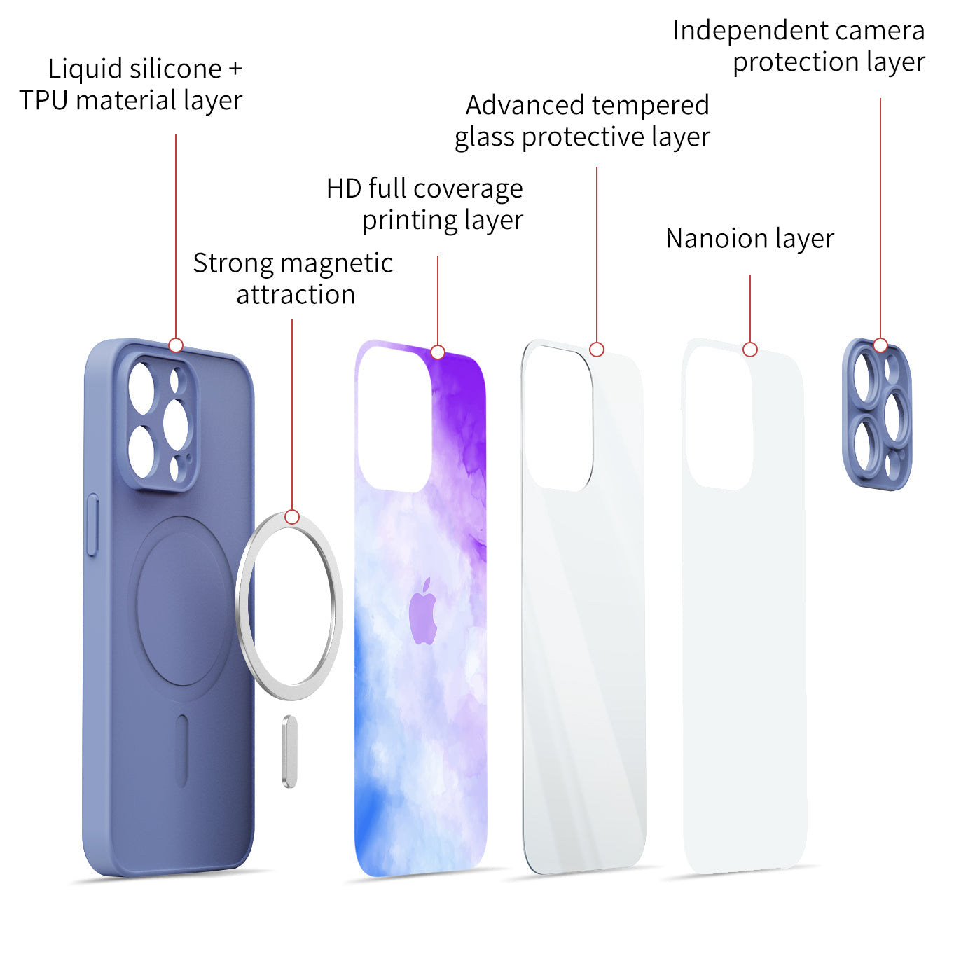 Adding a nano-ion layer helps the phone case to effectively reduce the impact force when objects collide. 9H tempered glass is by far the most advanced tempered glass in scientific experiments.