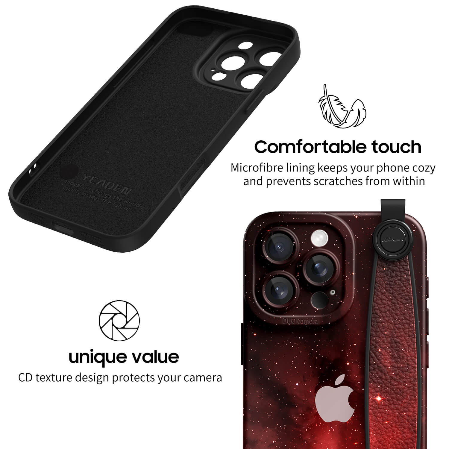 All In One Protection. The Hole Position Of The Camera Is Designed With CD Texture, Which Has A Visual Impact And Looks More Beautiful. Microfiber Lining Maintains Comfort And Protects Interior From Scratches.