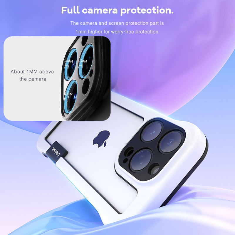 The lens frame heightened design is higher than the camera surface. The camera and screen protection part is 1mm higher for worry-free protection.