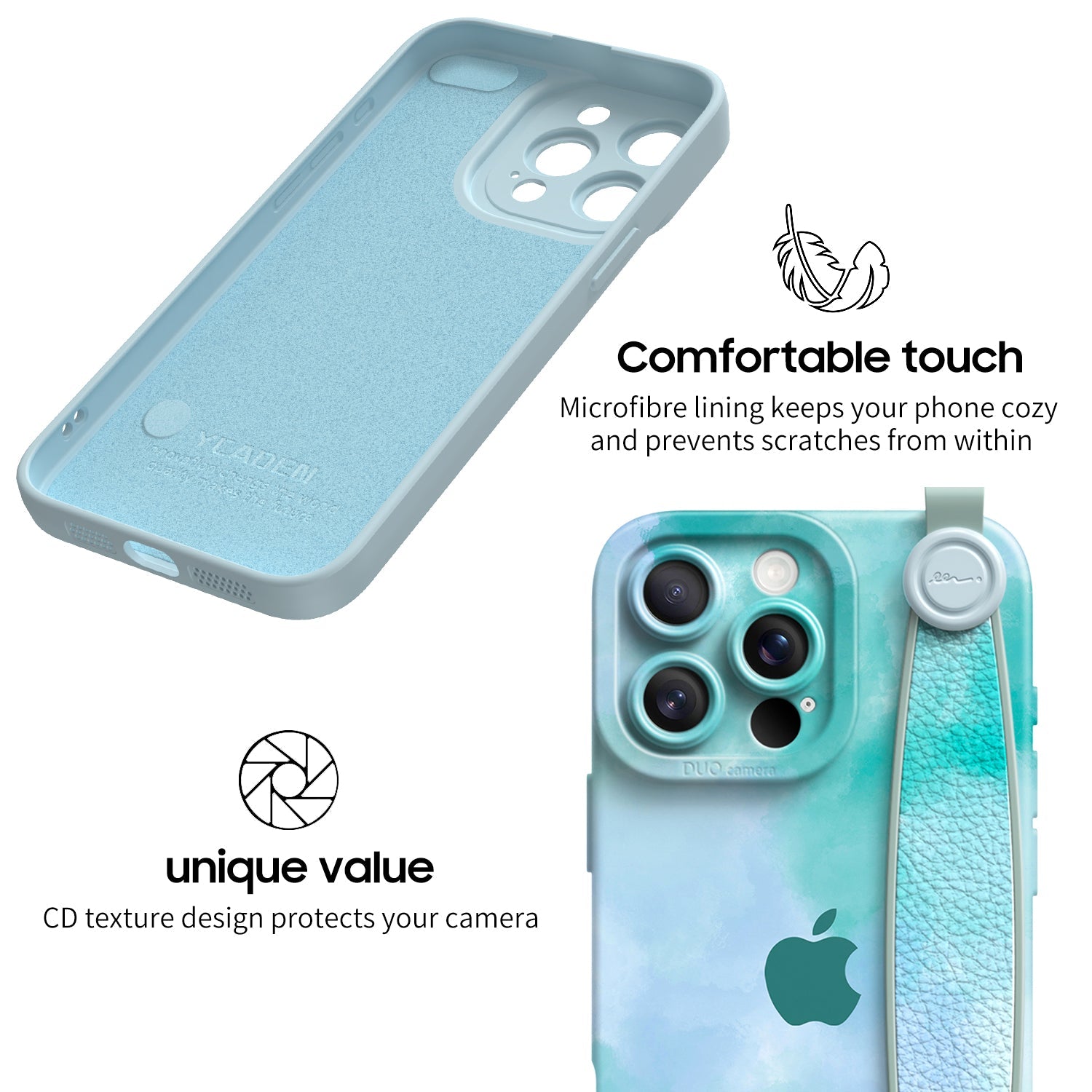 All In One Protection. The Hole Position Of The Camera Is Designed With CD Texture, Which Has A Visual Impact And Looks More Beautiful. Microfiber Lining Maintains Comfort And Protects Interior From Scratches.
