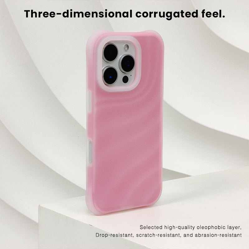 The silicone surface features a three-dimensional corrugated design with gently undulating ripples for a comfortable grip. The back panel is made of PC and features lint-free fabric for enhanced heat dissipation.