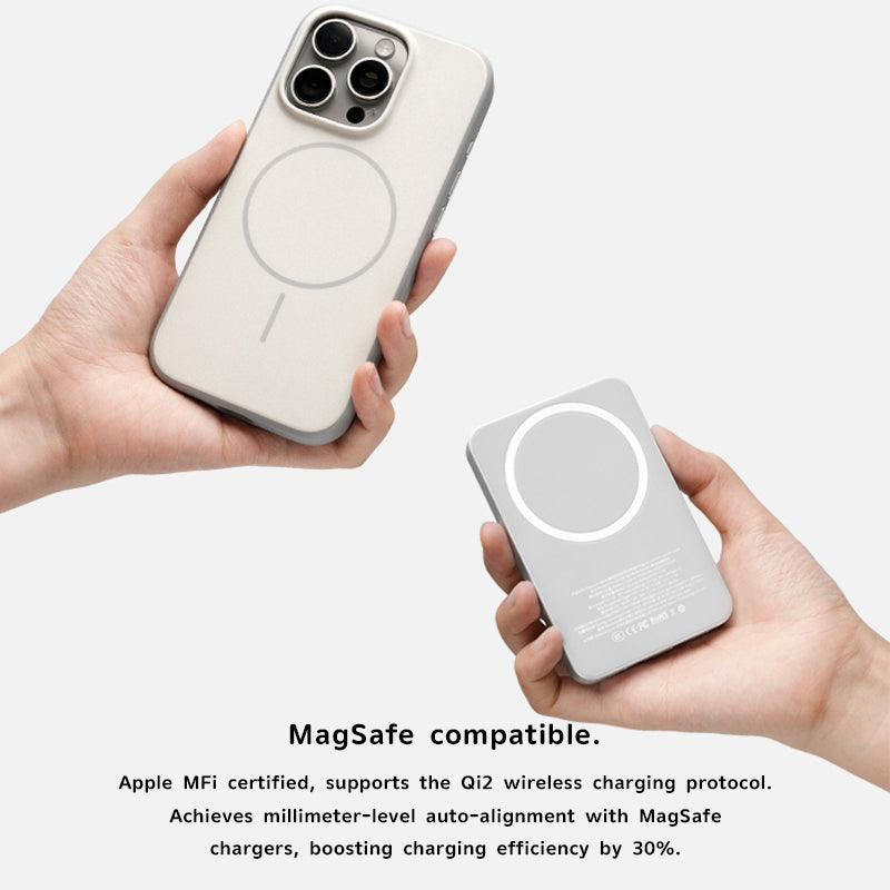 Apple MFi certified, supports Qi2 wireless charging protocol. Achieves millimeter-level auto-alignment with MagSafe chargers, boosting charging efficiency by 30%.